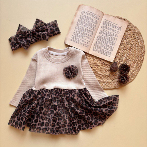 پیراهن زیردکمه پلنگی همراه با تل عیدانه مجلسی شیک