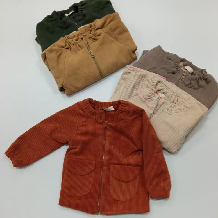 سویشرت مخمل کبریتی گرم دو جیب کت بچگانه زیپ دار شیک