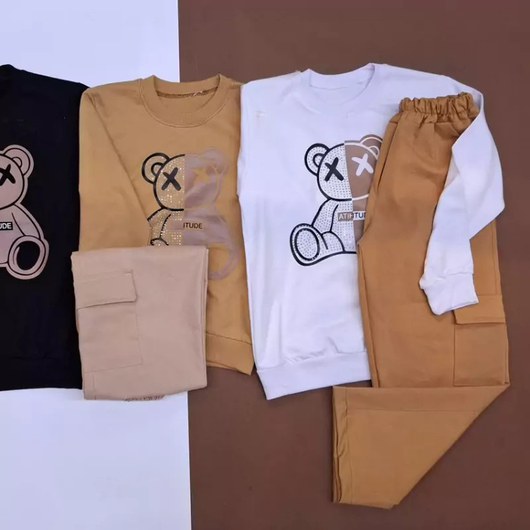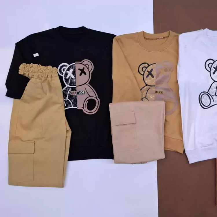 دورس شلوار طرح تدی 🧸 ✅️نگین کار شده ✅️بلوز پنبه درجه یک ✅️شلوار کارگو کتان ✅️سه رنگ جذاب ✅️سایز ۴۰ ۴۵ ۵۰ ۵۵ ۶۰
