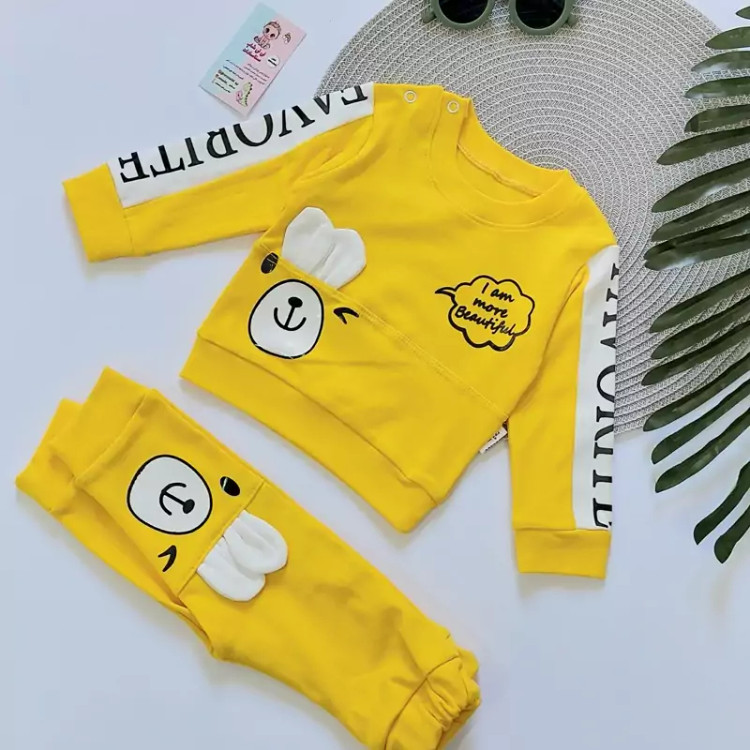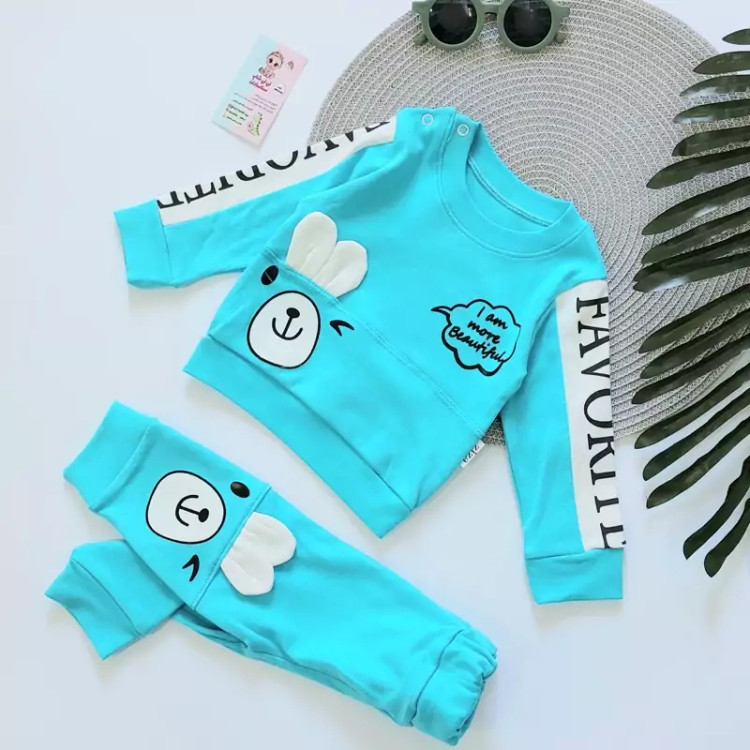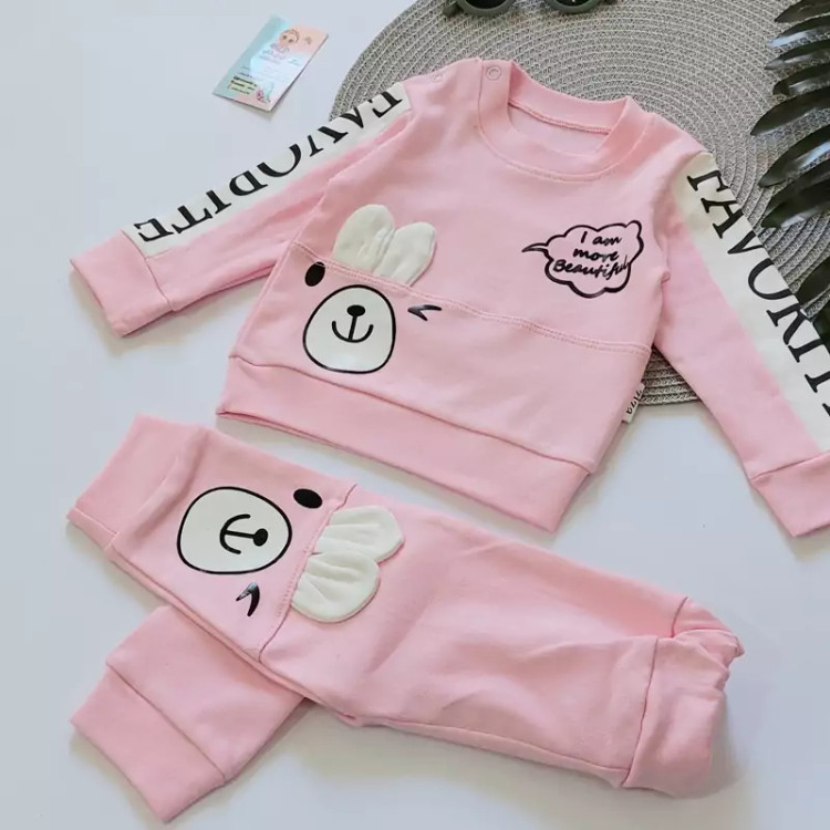 ست بلوز شلوار پنبه دورس سه نخ اعلاء خرگوشی نوزادی اسپرت