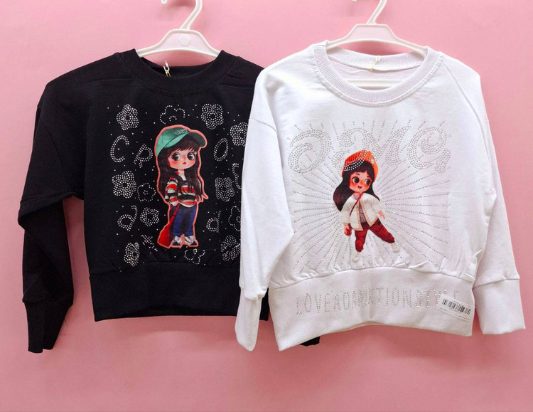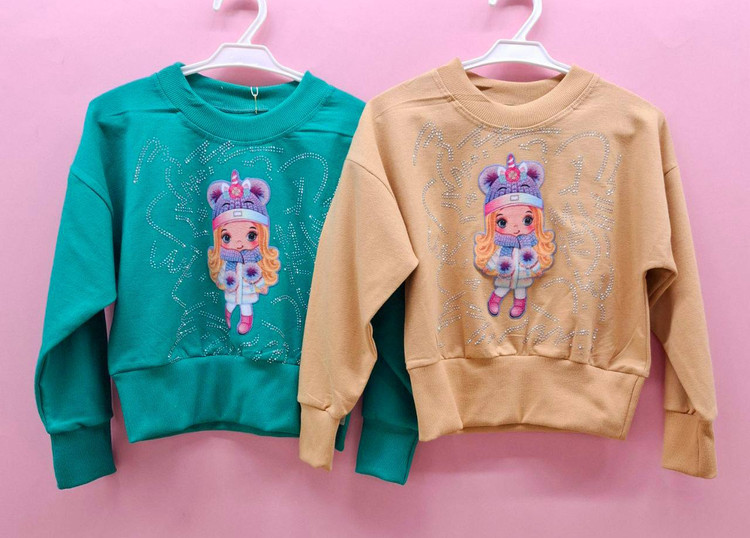 بلوز کراپ تک دخترانه نگین دار شیک آستین بلند لطیف