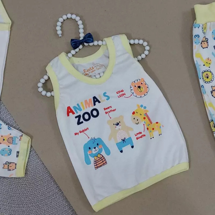 متاسفانه این کالا در حال حاضر موجود نیست. میتوانید از طریق لیست بالای صفحه، از محصولات مشابه این کالا دیدن نمایید.رکابی نوزادی هم دخترانه هم پسرانه طرح zoo لیمویی جنس پنبه پلی استر لطیف در سه سایز ۱ و ۲ و ۳ مناسب یک تا نه ماه