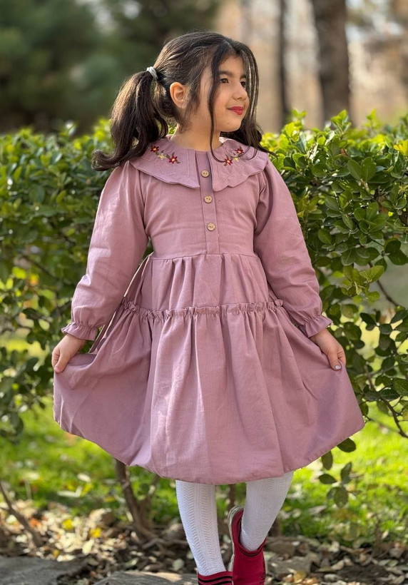 سارافون کتان گلدوزی شده شیک مدل اماتیس دخترانه