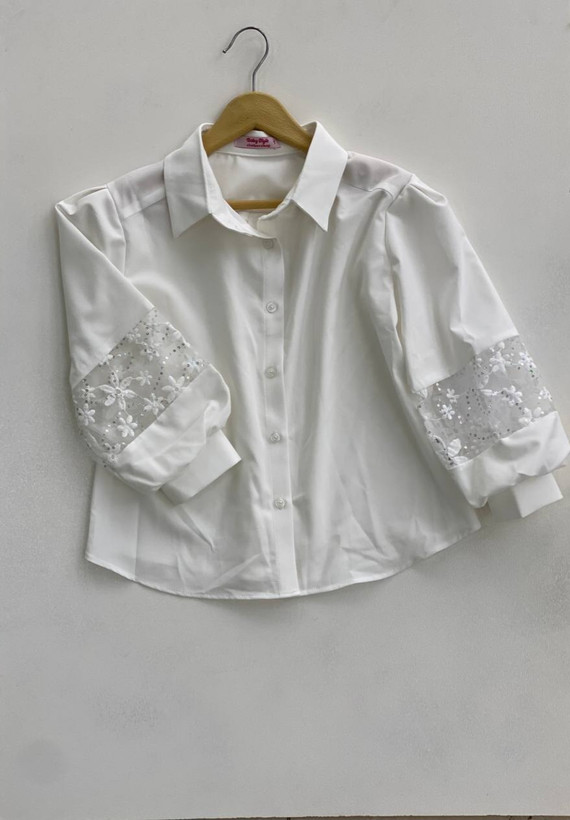 شومیز سفید دخترانه شیک و مجلسی قواره دار تا سایز ۷۰