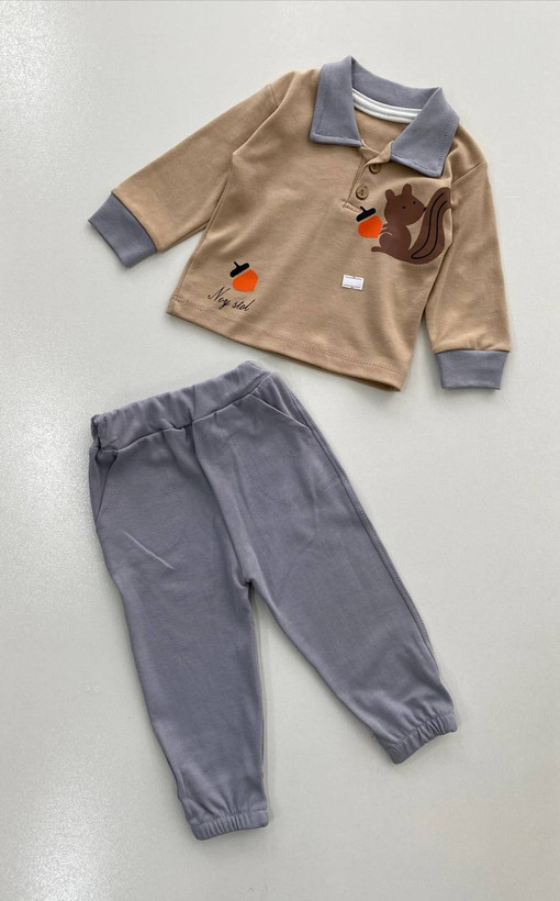 بلوز شلوار یقه دار سنجاب نوزادی پسرانه