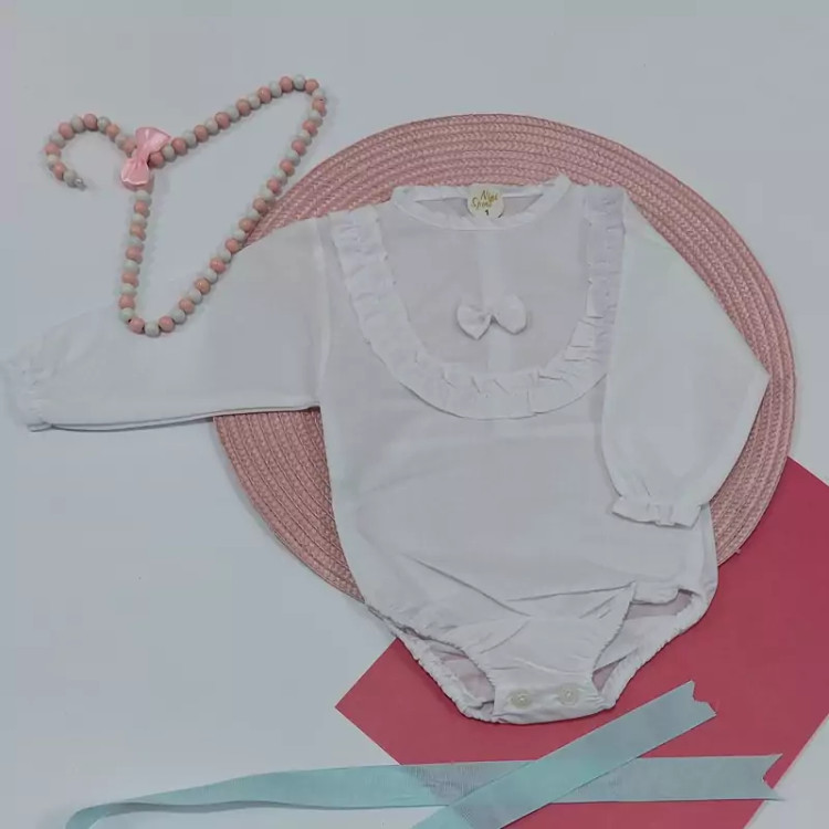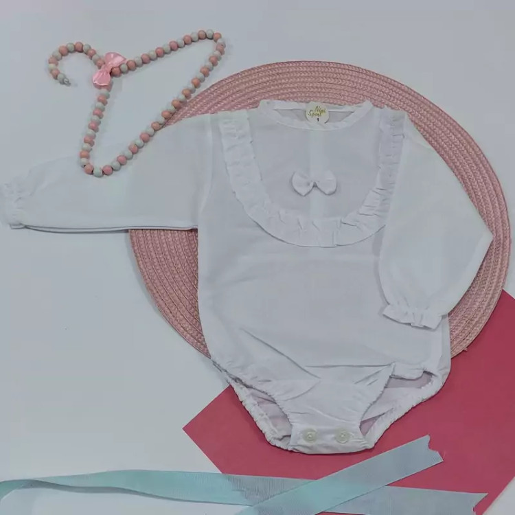 بادی تترون دخترانه پاپیون دار خنک زیردکمه تترون سفید نوزادی دخترانه سایز یک و دو و سه