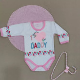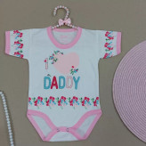 زیر دکمه نوزادی دخترانه طرح لاو ددی💖 جنس پنبه پلی استر لطیف در سه سایز ۱ و ۲ و ۳ مناسب یک تا نه ماه رکابی و آستین کوتاه و آستین بلند