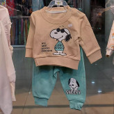 بلوز شلوار پنبه کبریتی اسنوپی نوزادی سایز 30 و 25 پسرانه اسپرت