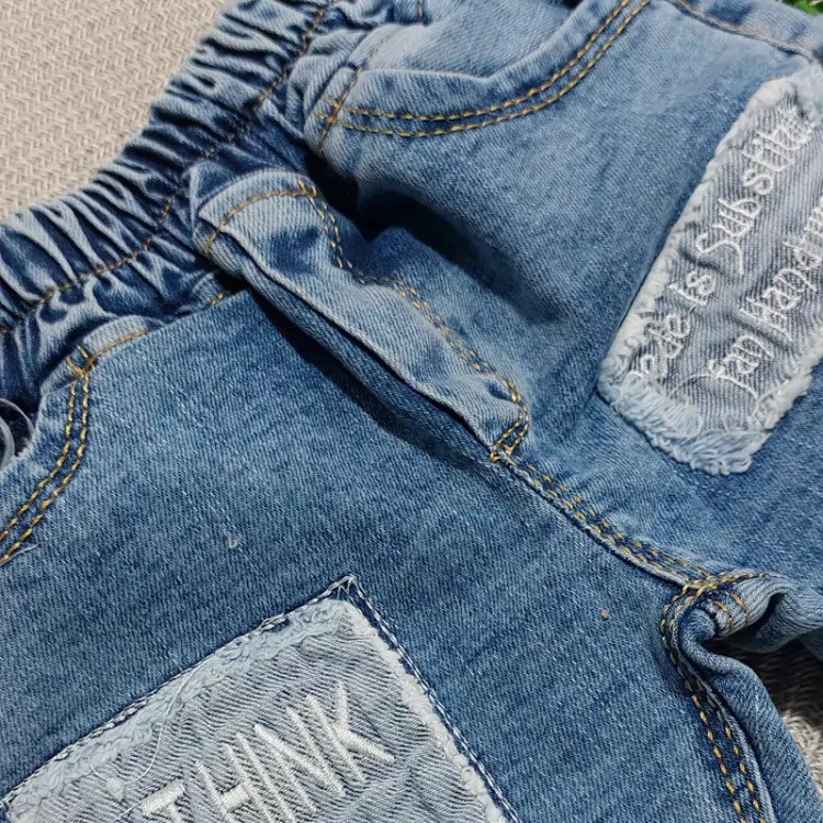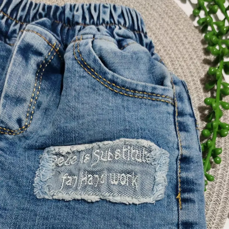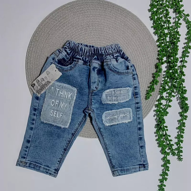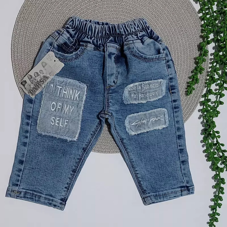 شلوار لی جین بچگانه از نوزادی تا شش سال آبی مدل انگلیسی تکست