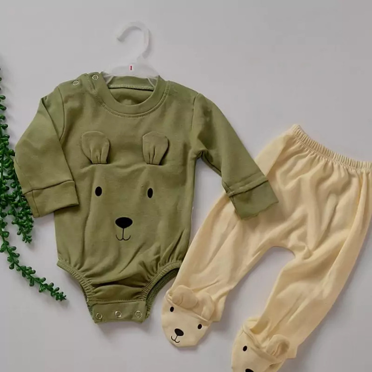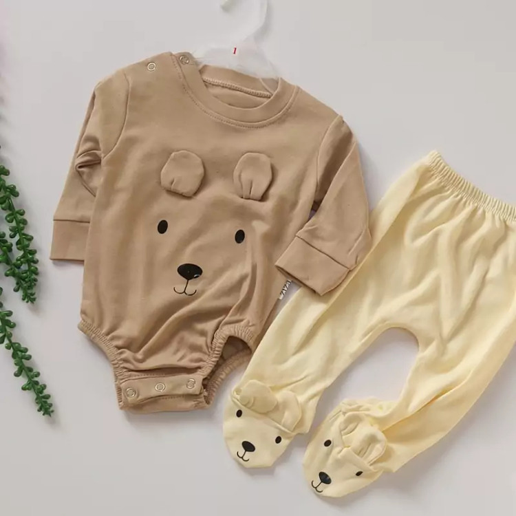 بادی شلوار جوراب دار هاپو🐶 دکمه سرشانه در سه رنگ زیبا🎨 جنس سوپر پنبه اعلاء✅️ سایز یک دو و سه ━━━┛