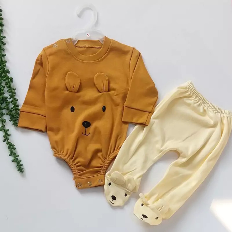 بادی شلوار هاپو عروسکی شلوار جورابدار نوزادی پنبه عالی فانتزی اسپرت
