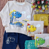بلوز شلوار پسرونه طرح دایناسور🦕 جنس: نخ پنبه اعلا👌 ضد تعریق،ضد حساسیت سایزبندی ۴۰،۴۵ 🌈رنگبندی: ابی،سبز،طوسی،زر