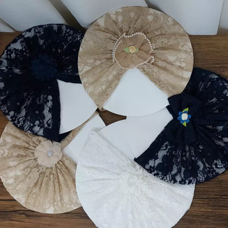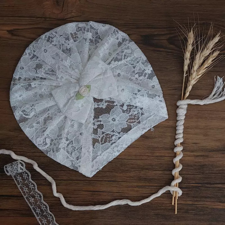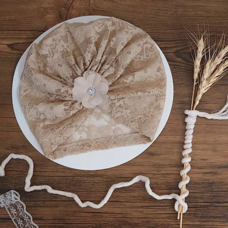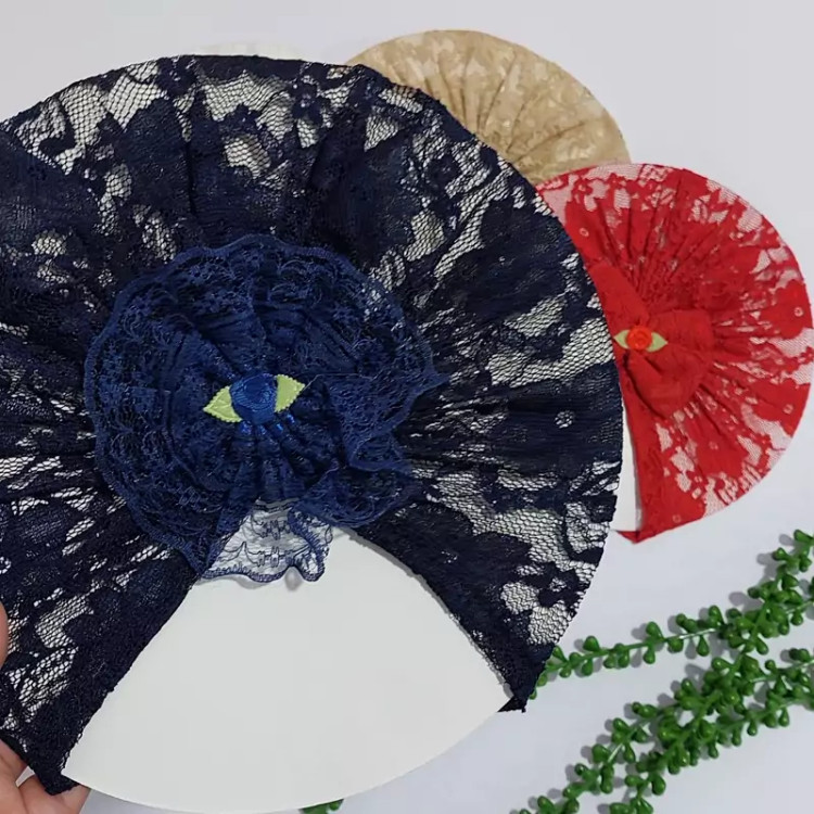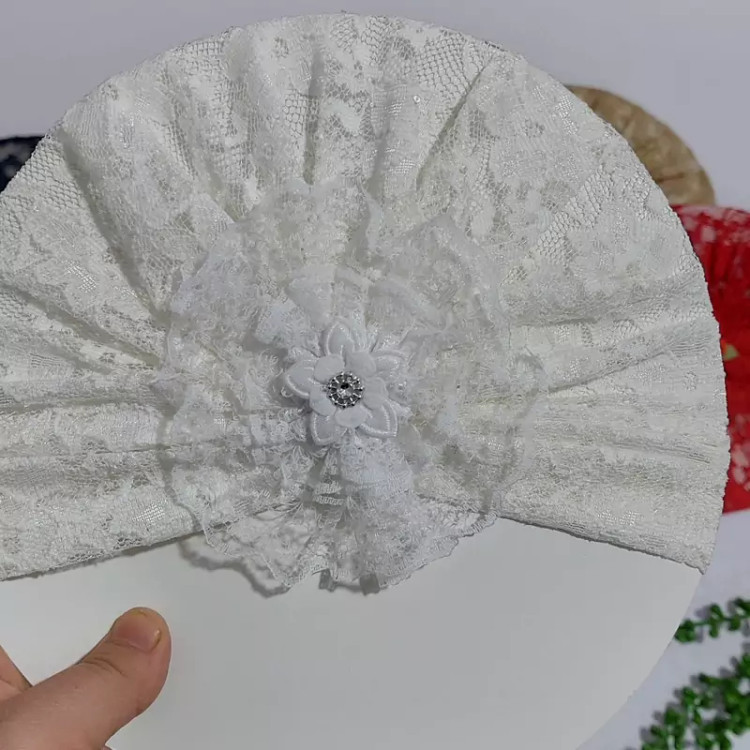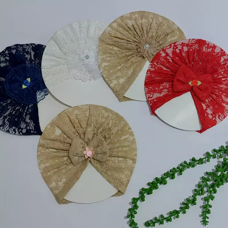 توربان نوزادی دخترانه مدلهای مختلف، جنس توری کشی نرم و لطیف ، رنگهای نسکافه ای ، سفید ، سرمه ای