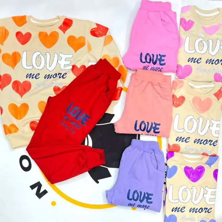 بلوز شلوار تمام پنبه قلبی طرح love دخترانه